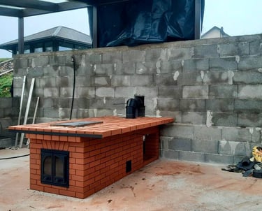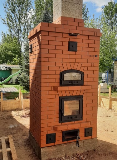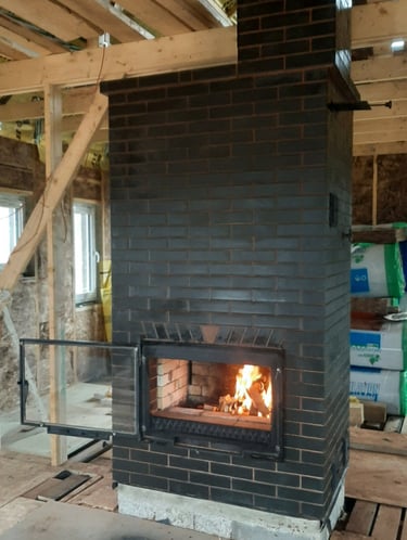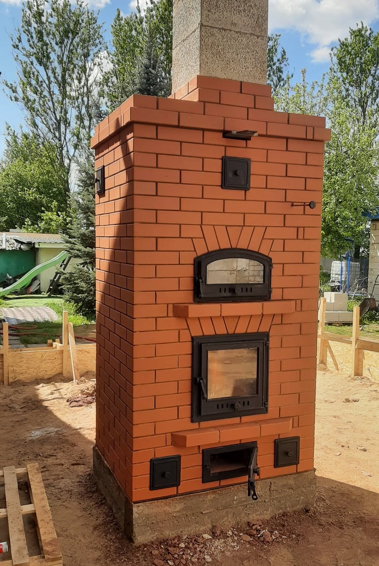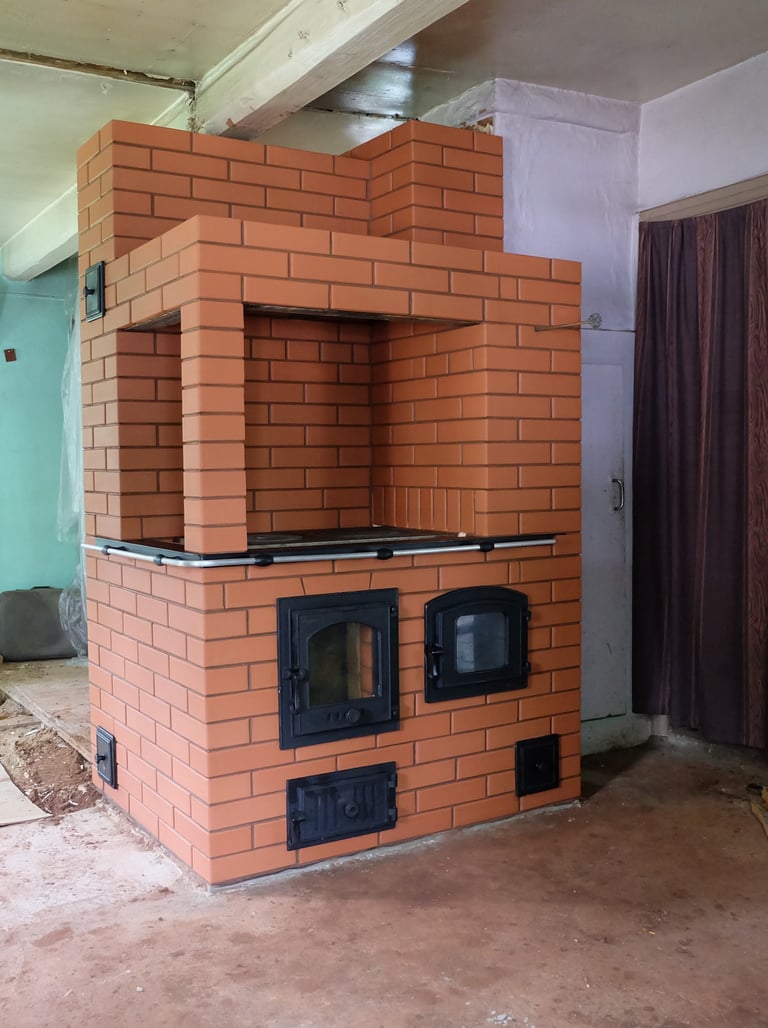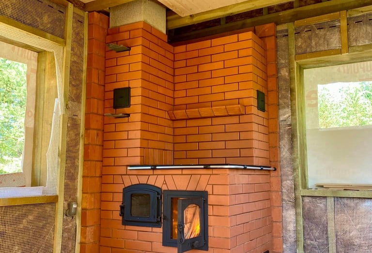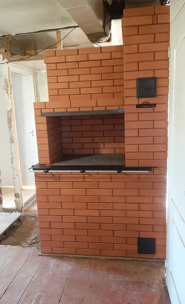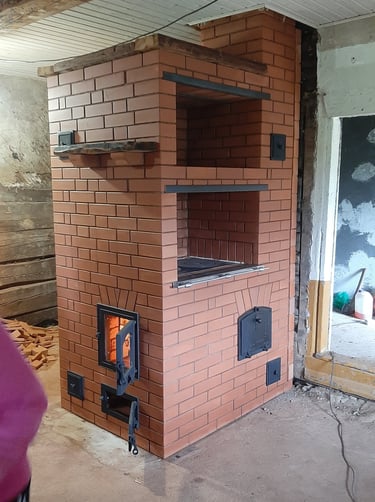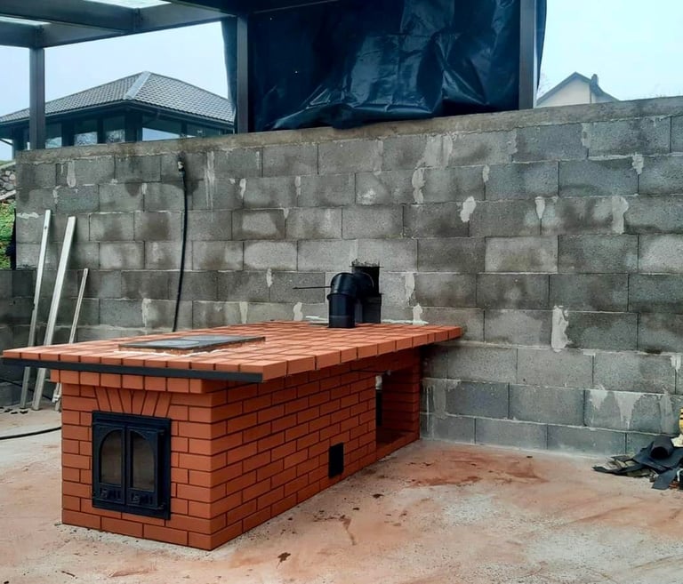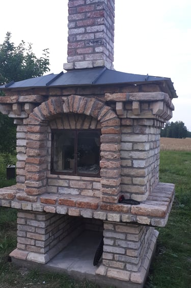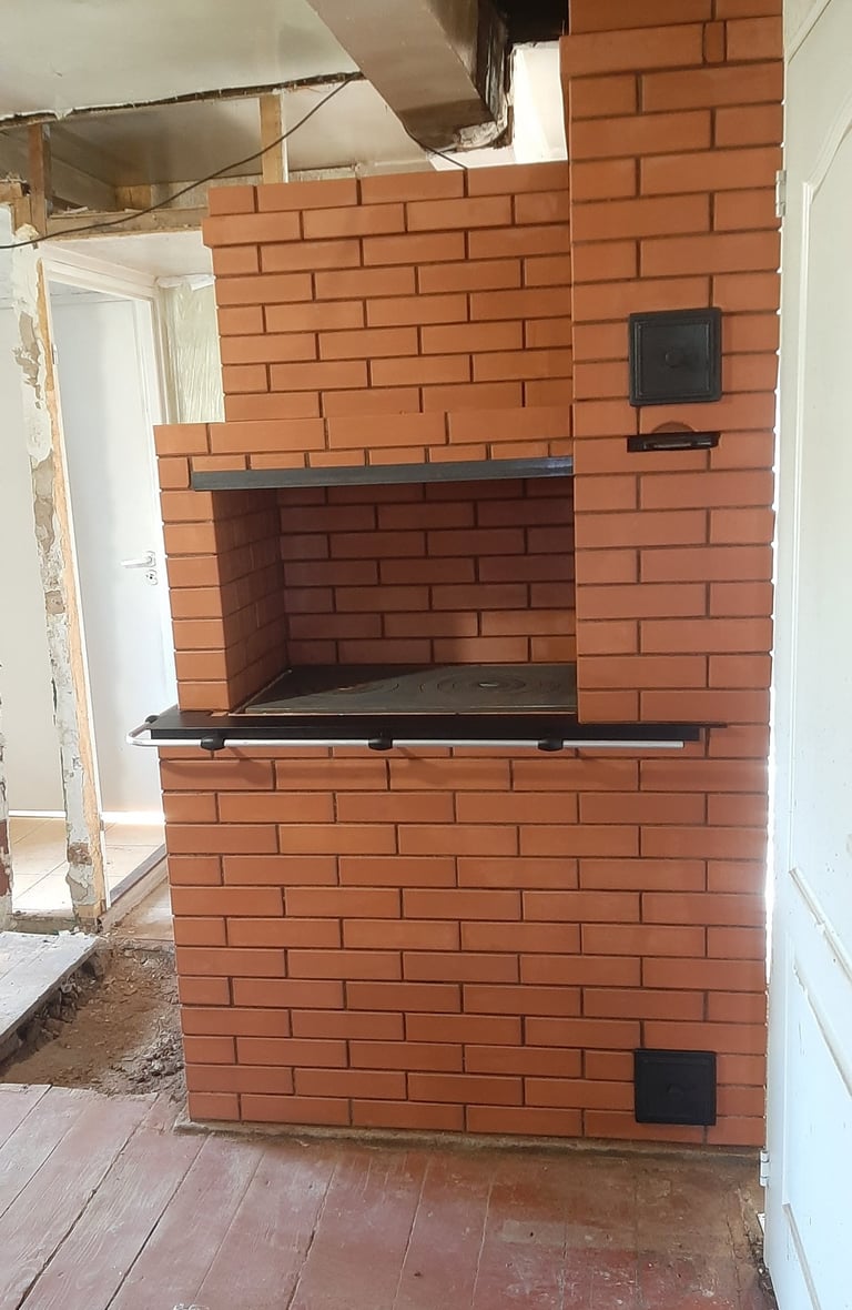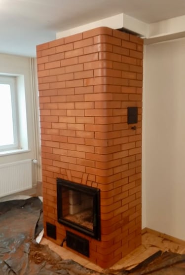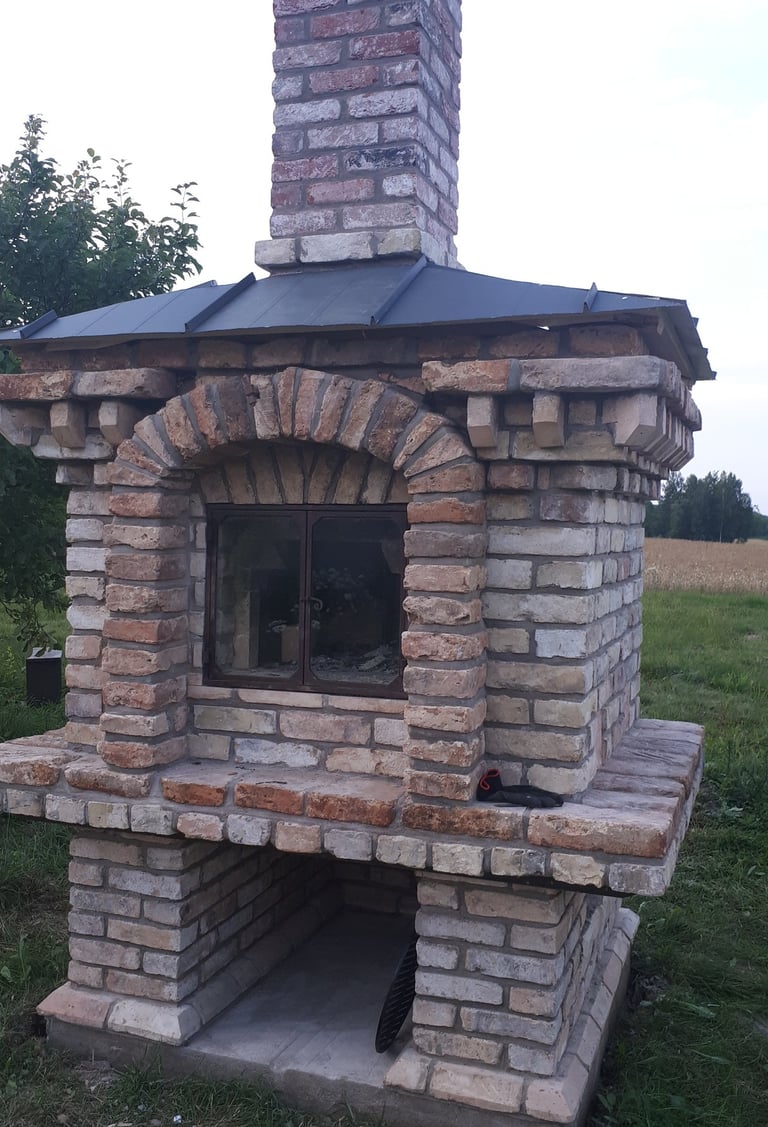 Vidaus krosnių, židinių, lauko kompleksų, šiltų sienelių statymas.